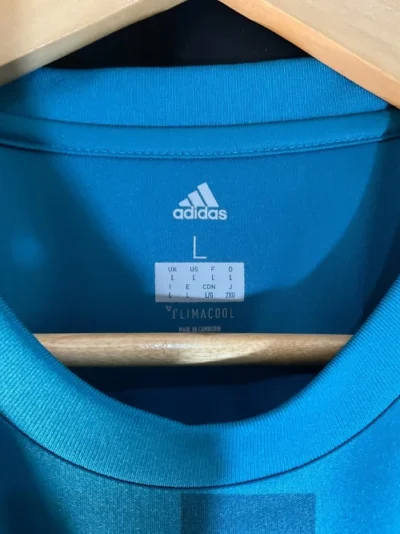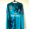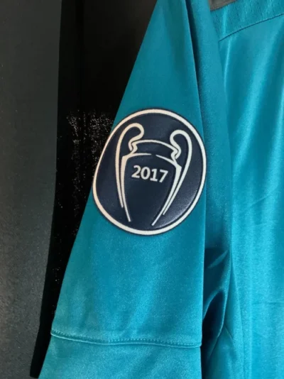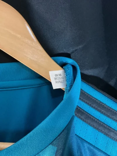 The Real Madrid 2017/18 third kit was a popular, fan-designed jersey that was primarily teal (or “sky blue”) with black accents and a subtle graphic pattern. It was worn during a highly successful season in which the club won an unprecedented third consecutive Champions League title.