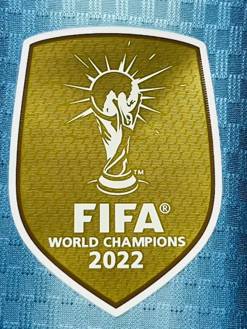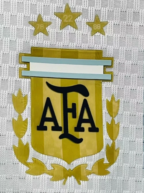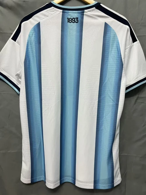 A design by Adidas that pays tribute to their three World Cup victories (1978, 1986, and 2022). The kit features their classic white and sky blue vertical stripes.
