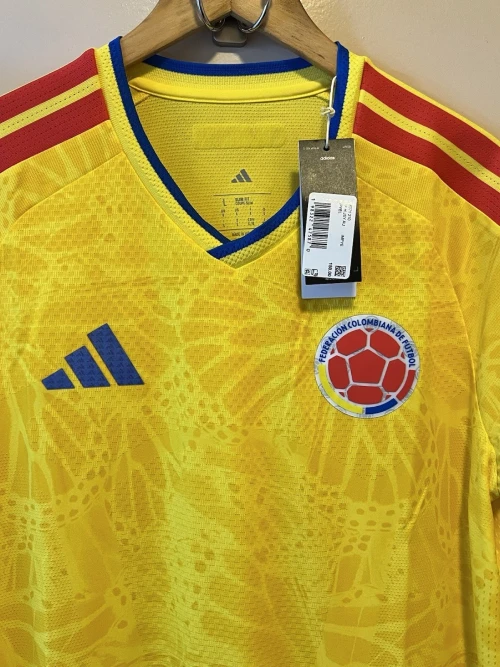 The Colombia 2026 World Cup home kit, officially released in November 2025, features a vibrant yellow base with subtle, butterfly-inspired motifs.